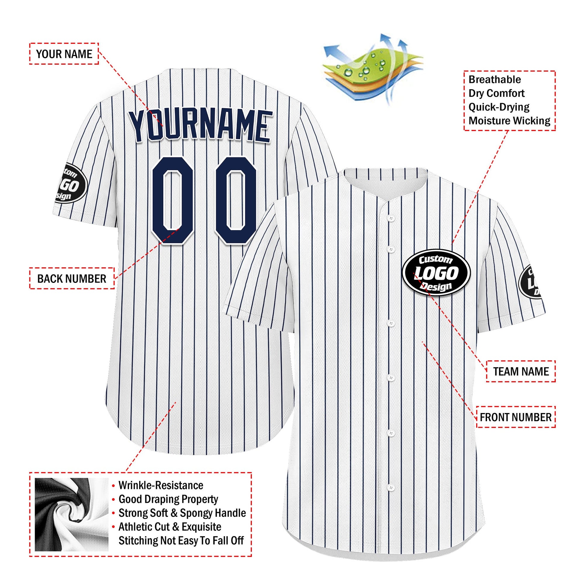 Each CCJ tailored baseball jersey is meticulously personalized with the following features: