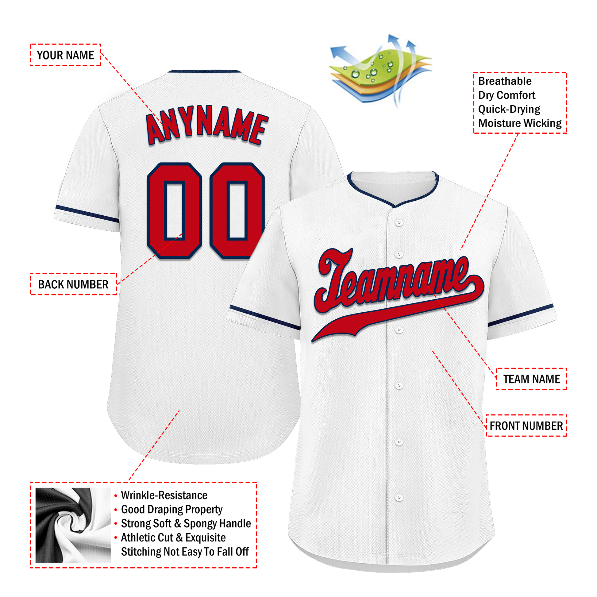 Each CCJ tailored baseball jersey is meticulously personalized with the following features: