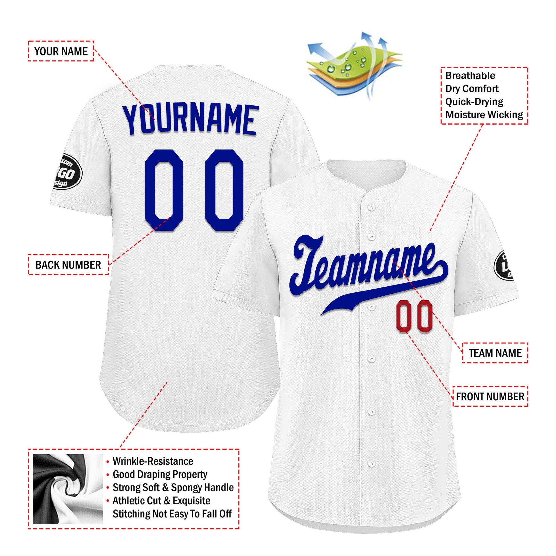 Each CCJ tailored baseball jersey is meticulously personalized with the following features: