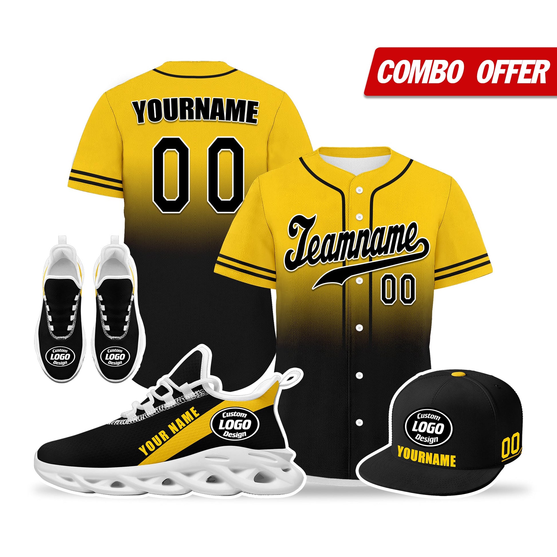 Elevate your fashion game with this exclusive combo deal featuring a custom hat, a pair of custom sneakers, and a custom jersey!