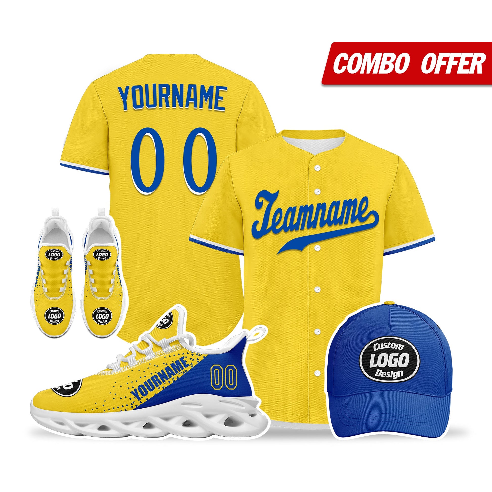 Corporate Gifts,Custom Yellow Blue Jersey MaxSoul Shoes and Hat Combo Offer Personalized ZH-D0b008e-c