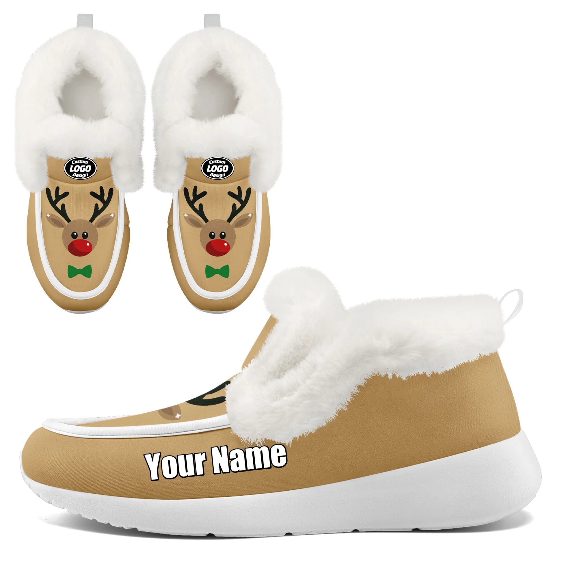 Cute Christmas Reindeer Plush Lined Slipper Boots, Cozy & Warm Holiday House Shoes FN064-25009042
