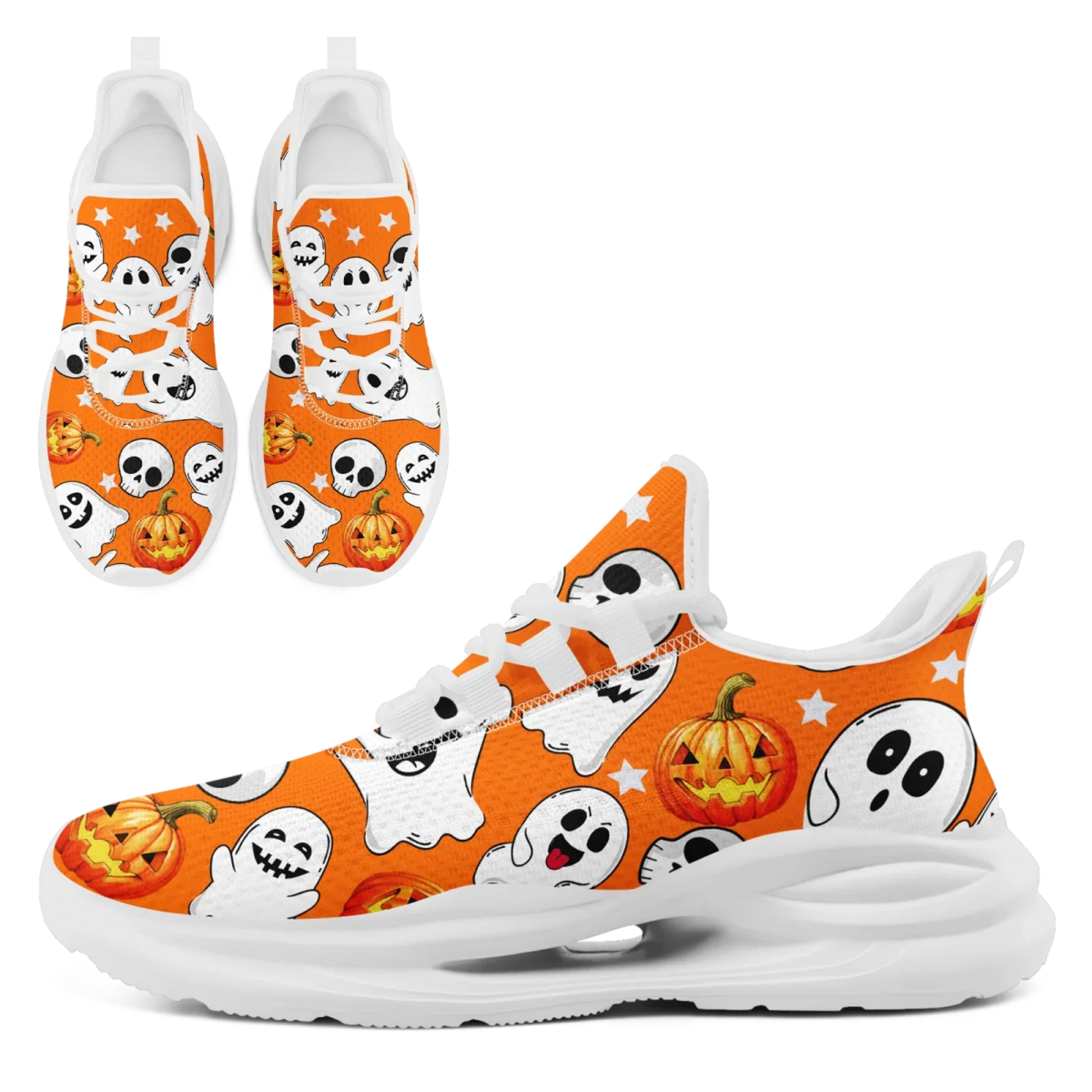 Cute Ghost & Pumpkin Halloween Athletic Sneakers, Spooky Fun Holiday Party Trainers FN079-25018035