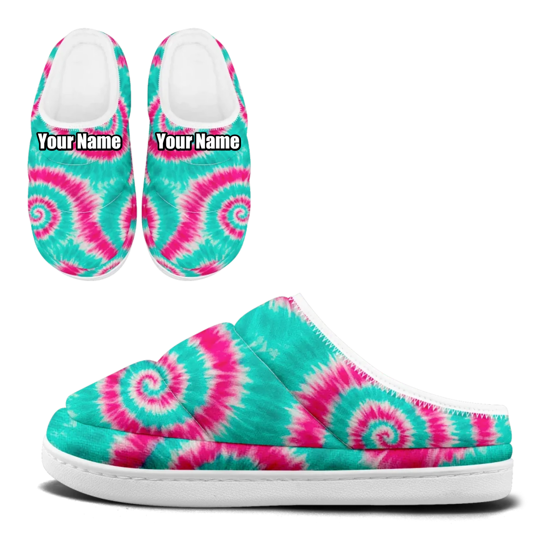 Groovy Aqua & Pink Tie-Dye Swirl Home Slippers - Retro Hippie Style FN057-25027171