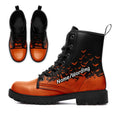 Halloween Bat Swarm Combat Boots, Pumpkin Orange & Black Ombré Gothic Style Boots 058-6-25009051