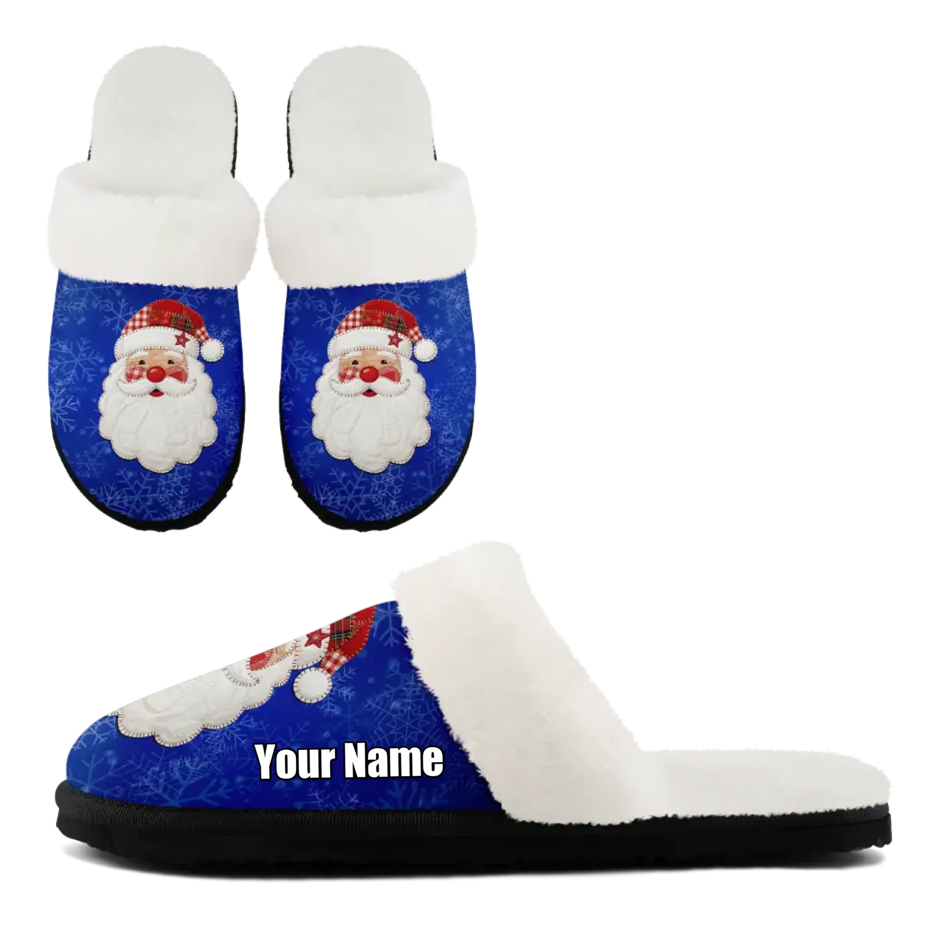 Jolly Santa Claus & Snowflake Christmas Plush Slippers, Cozy Blue Holiday House Shoes FN089-25018036
