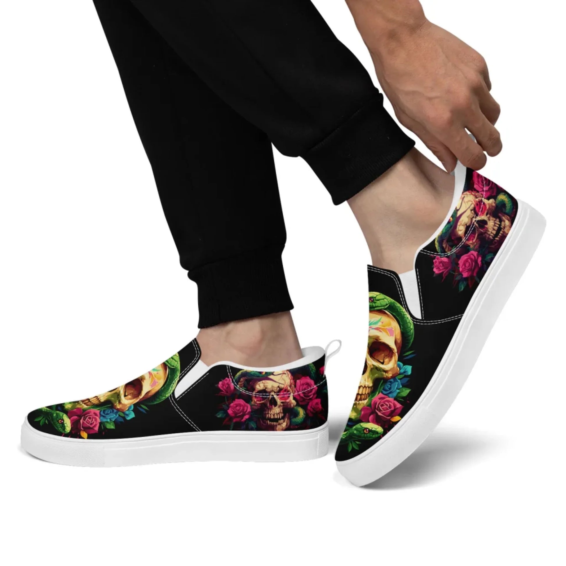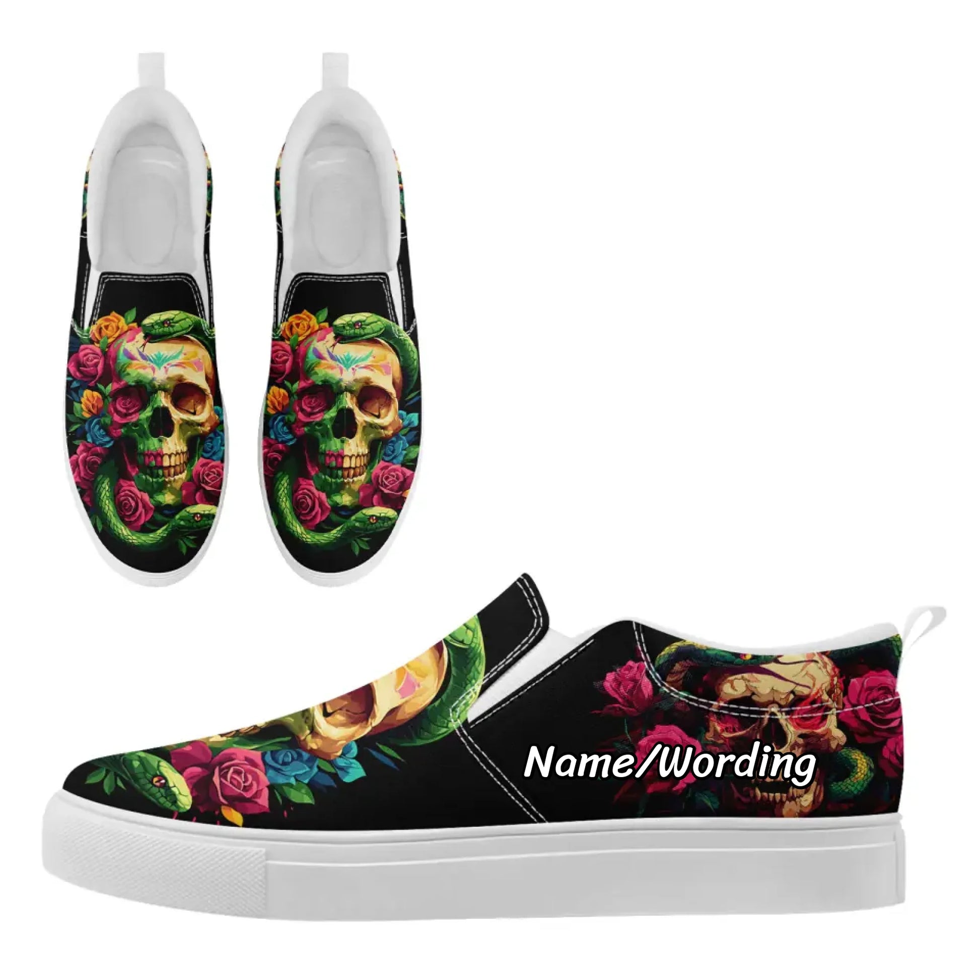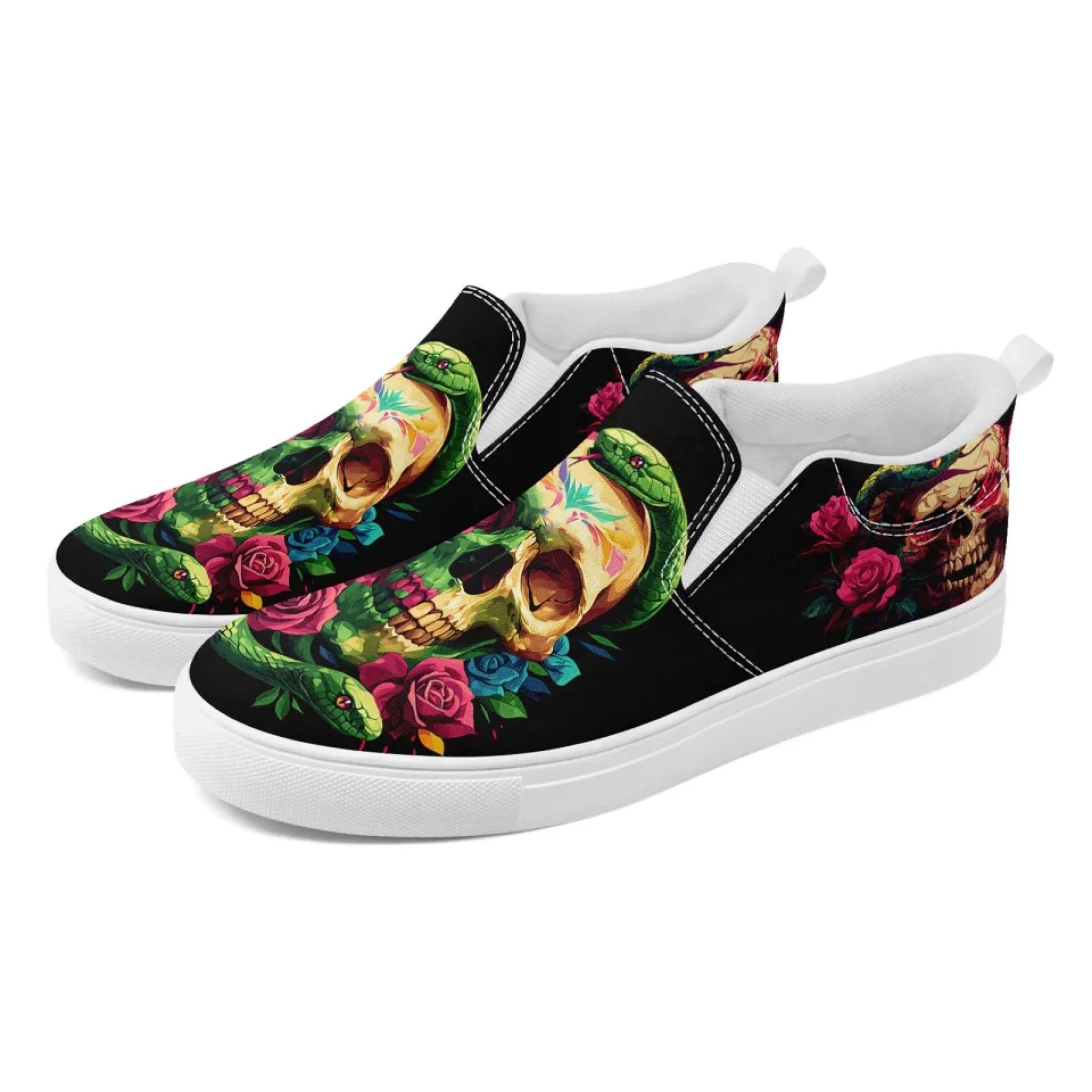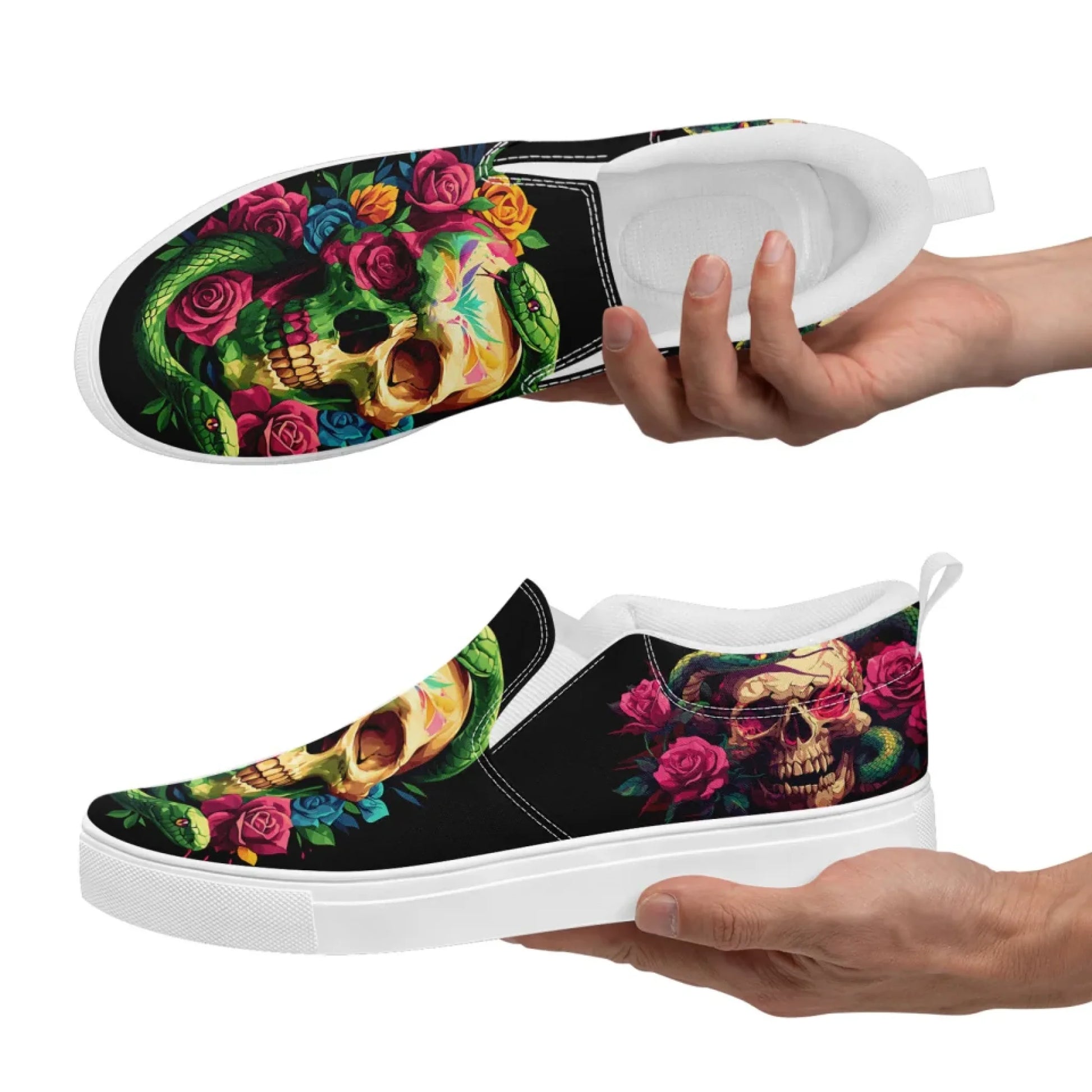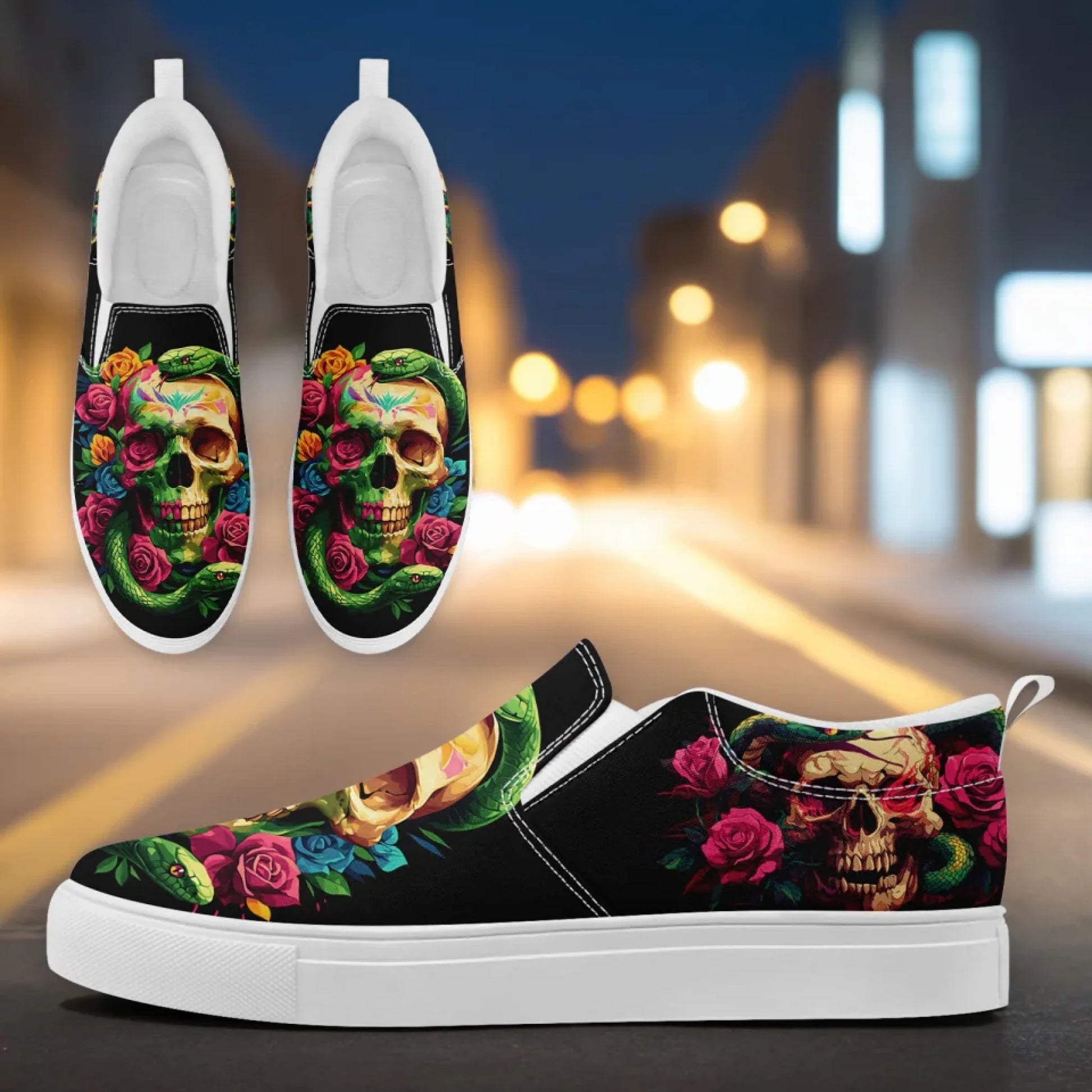 Personalized Gothic Fashion Sneakers, Custom Skull Slip On Shoes, Skeleton Unisex Comfort Shoes
