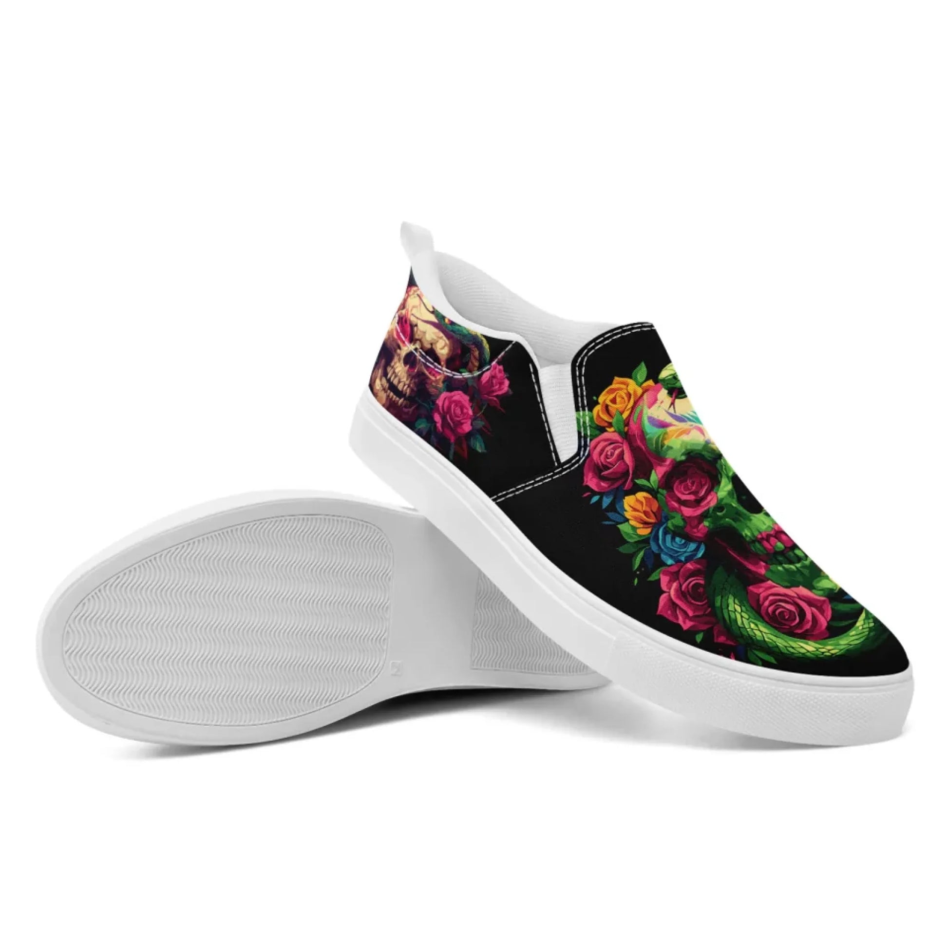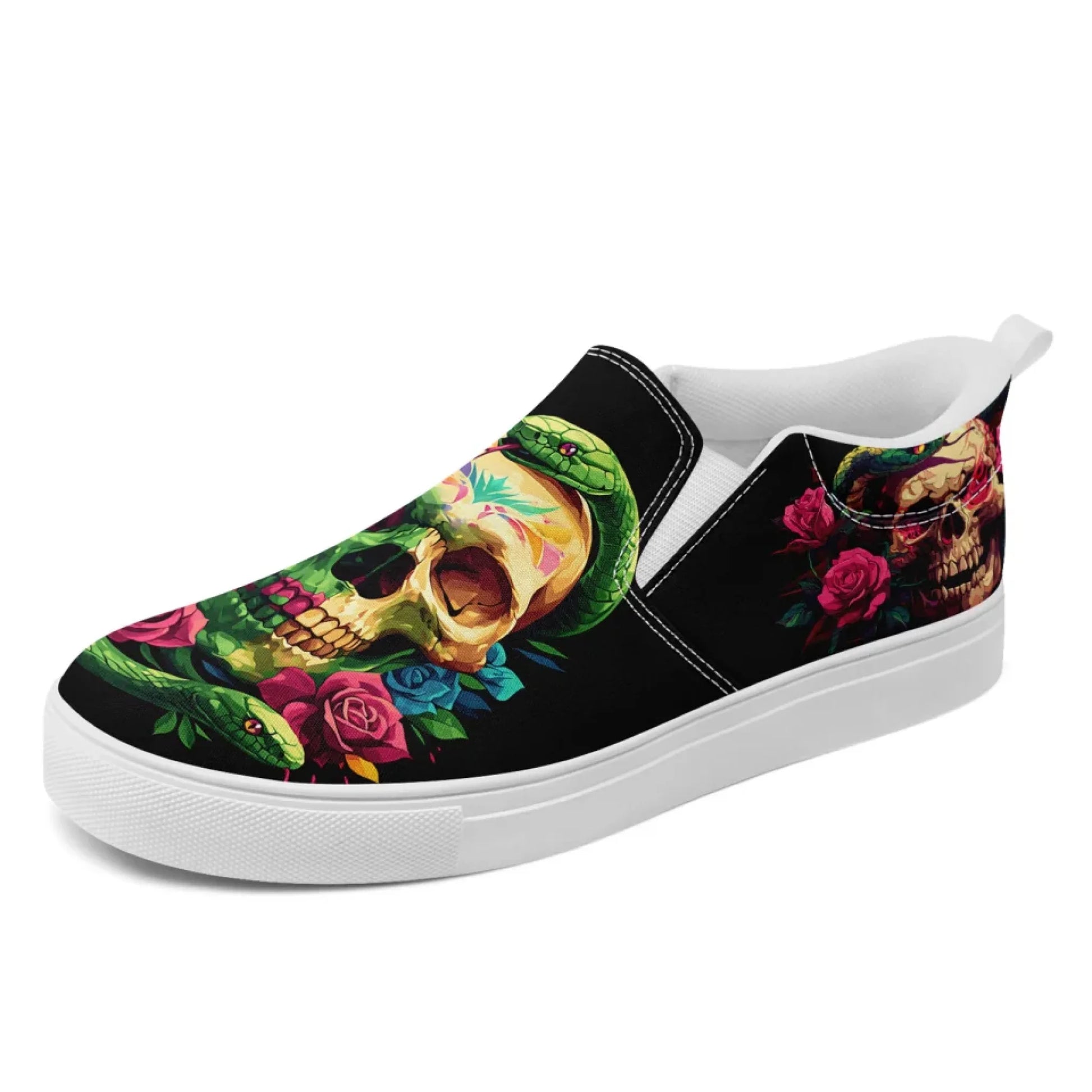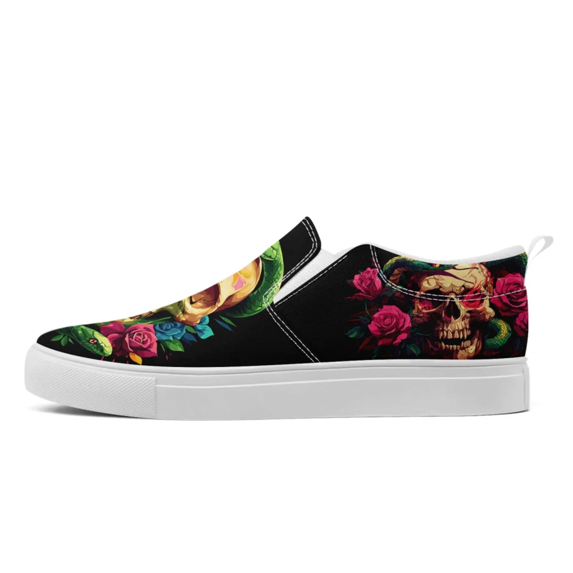 Crafted with high-quality materials, these sneakers offer a snug fit and all-day comfort, making them ideal for both casual outings and themed events. The slip-on design ensures easy wear, while the durable sole provides excellent traction and support. Whether you're a fan of Gothic aesthetics or simply love unique footwear, these sneakers are sure to turn heads.