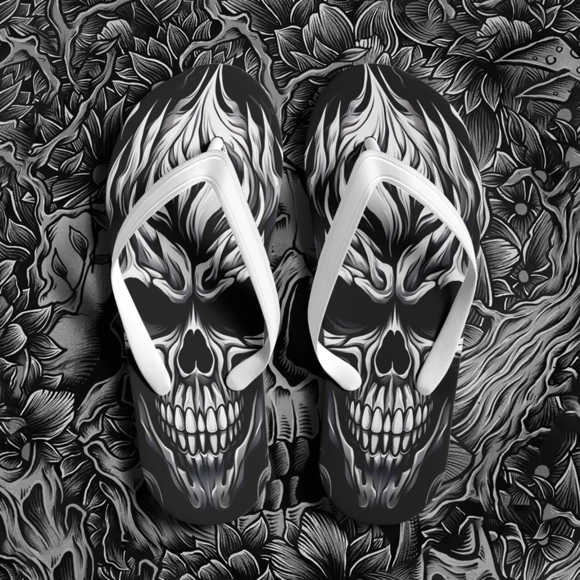 Personalized Gothic Flip Flop, Custom Skull Fashion Slippers, Lightweight Unisex Flip Flop