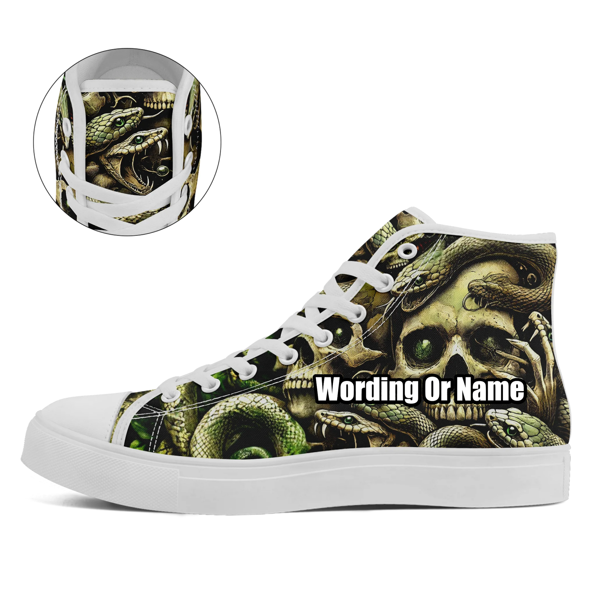 Crafted from lightweight and breathable materials, these shoes provide all-day comfort without sacrificing their bold, alternative edge. Add your name, initials, or artwork to make them uniquely yours — perfect for personal wear or as a gift for a fellow goth or alt-fashion fan.