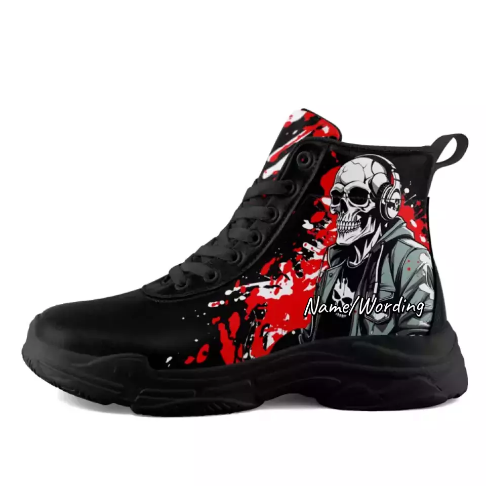 Step up your style game with our Personalized High-Top Sneakers! Featuring a unique custom skull design and vibrant graffiti accents, these shoes are perfect for making a bold statement. Crafted for both comfort and durability, they offer a snug fit that keeps you on your feet all day. Whether you're hitting the streets or hanging out with friends, these stylish kicks will elevate any outfit. Express your individuality and stand out from the crowd with our one-of-a-kind high-tops!