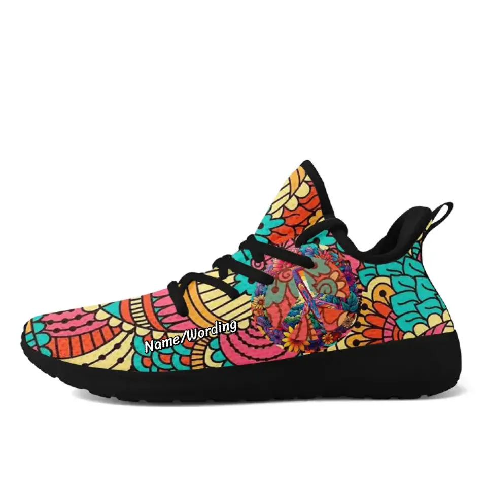 Introducing our Personalized Love and Peace Sneakers, the perfect blend of style and message. These Custom Peace Design Shoes are not only fashionable but also carry a powerful symbol of peace and love. Designed with utmost attention to detail, these Walking Shoes feature a unique peace sign pattern that is sure to catch everyone's attention. Each pair is meticulously crafted to ensure maximum comfort and durability, making them ideal for everyday wear. What sets our Love and Peace Sneakers apart is the option to personalize them with your own touch. Add your name, initials, or a meaningful quote to make these shoes truly one-of-a-kind. Whether you want to spread a message of peace or simply express your individuality, these customized shoes are the perfect canvas for self-expression. Constructed with high-quality materials, these sneakers are built to withstand the test of time. The breathable fabric and cushioned insole provide a comfortable walking experience, ensuring your feet stay happy and relaxed throughout the day. Whether you're strolling through the city streets or embarking on an outdoor adventure, our Love and Peace Sneakers will accompany you every step of the way. Embrace the essence of peace and love with these stylish and meaningful shoes. Upgrade your footwear collection today with our Personalized Love and Peace Sneakers. Walk in style while spreading a powerful message of peace and love.