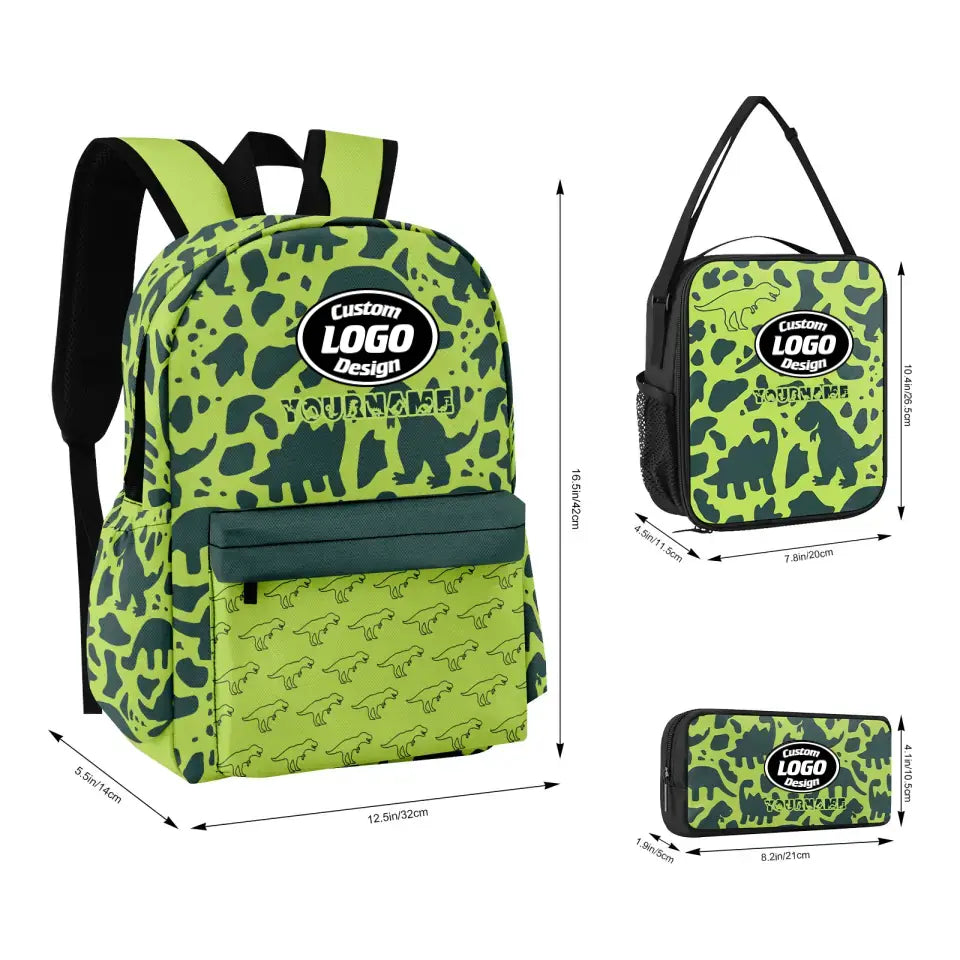 Gift Ideas,Personalized Unisex School Backpack, Custom Dinosaur Design Set 3 Packs, Schoolbag Lunch Box Pencil Case