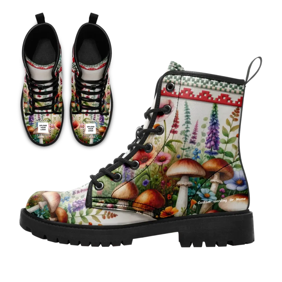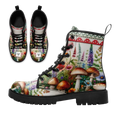 Unique Gift,Psychedelic Mushrooms Memory Foam Boots | All Season Lace Up Boots | Vegan Leather Combat Boot