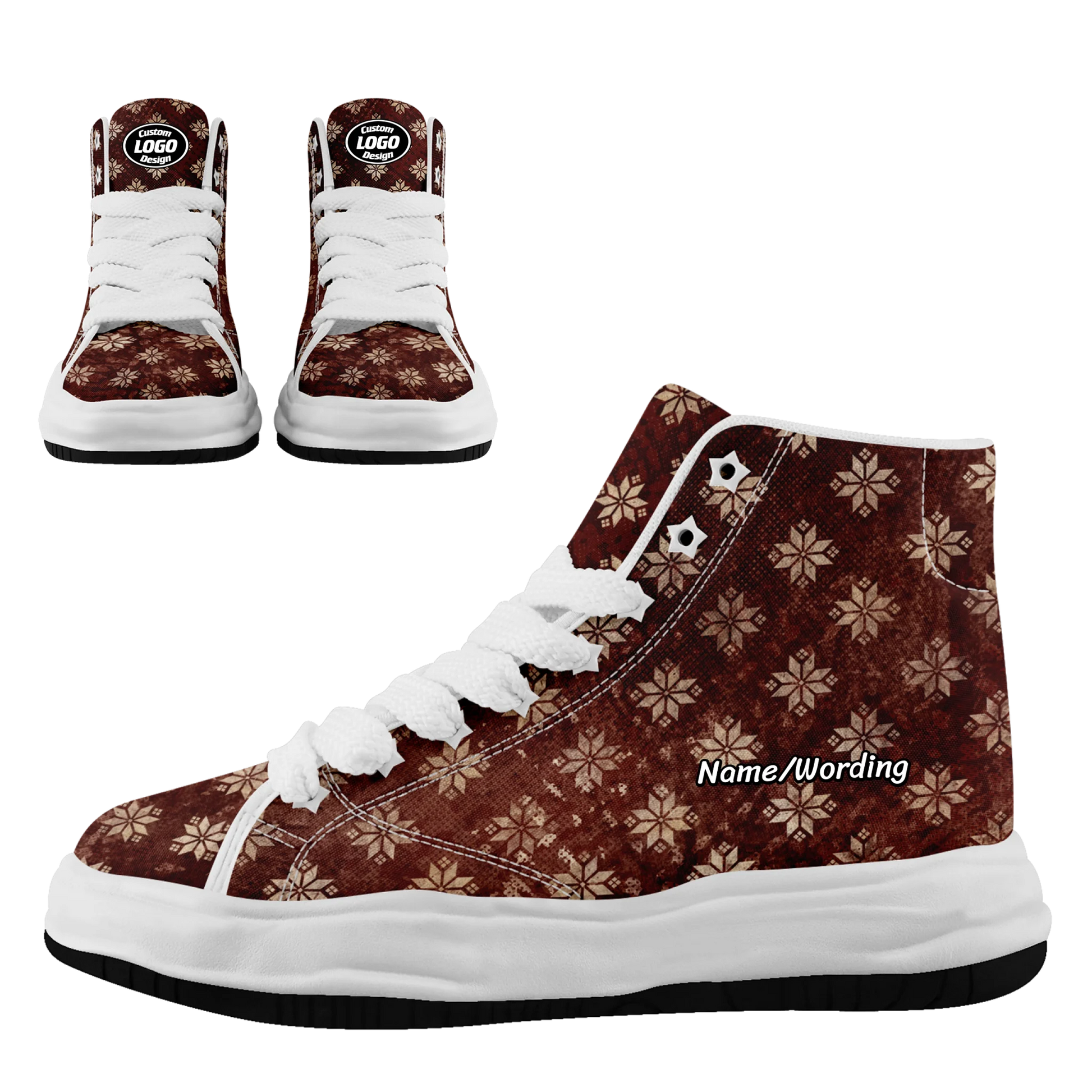Wrap your feet in the warmth of a classic Christmas. Inspired by your favorite vintage holiday sweater, these high-tops feature a nostalgic Nordic snowflake pattern on a deep, rustic red. This timeless, cozy design meets a modern, comfortable sneaker silhouette, creating the perfect blend of retro charm and contemporary style. Wear your coziest holiday memories.
