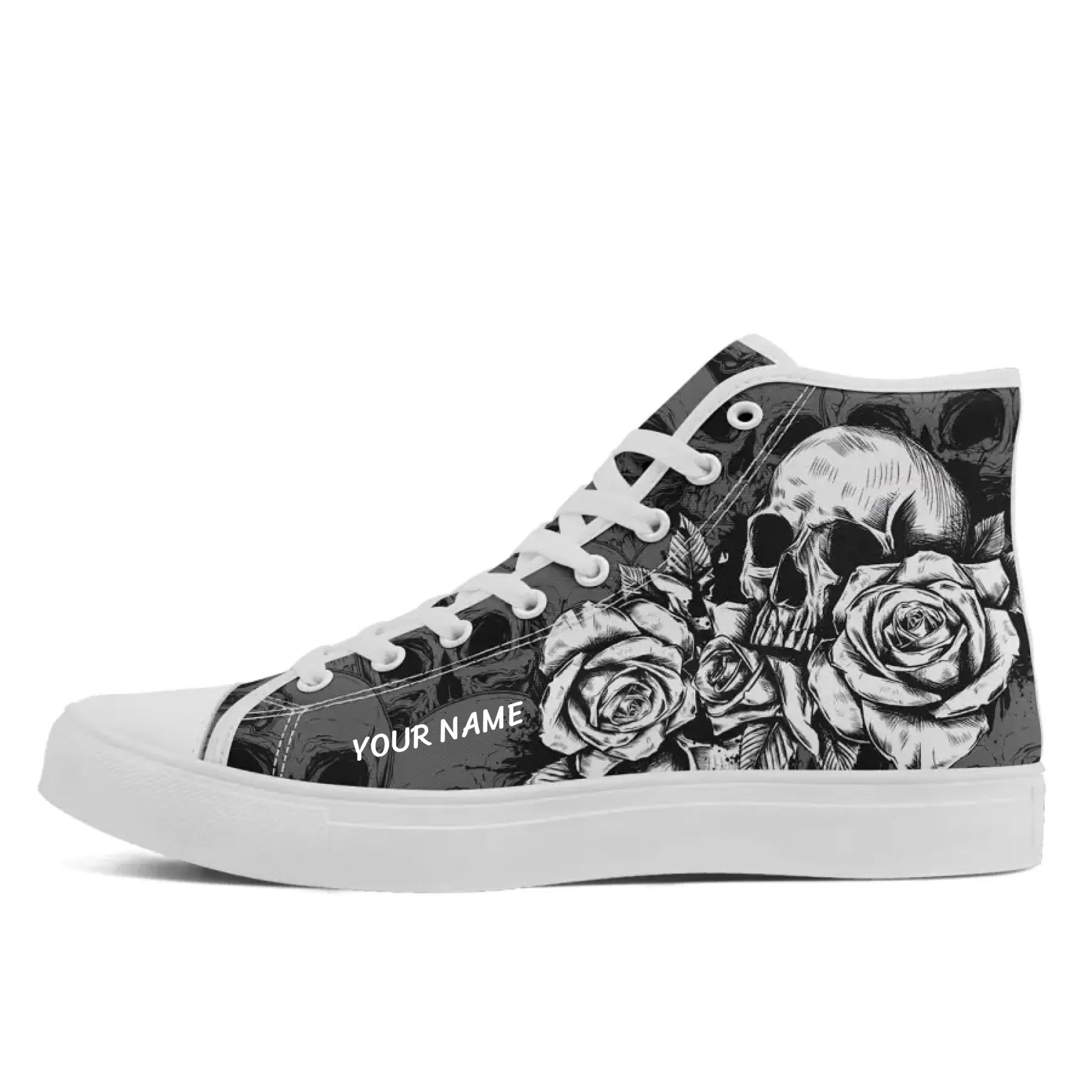 Unleash your bold style with Personalized Skull Sneakers, the ultimate footwear for fans of edgy, gothic fashion. These custom canvas high-top shoes showcase intricate skeleton designs that exude attitude and creativity. Perfect for men and women alike, they add a striking touch to casual outfits or themed occasions. Built for comfort and durability, these high-tops feature breathable canvas material and a sturdy rubber sole, making them perfect for everyday wear. Whether you're making a fashion statement or searching for a unique gift, these customizable sneakers are sure to impress. Key Features: Custom Skull Design: Add a personal touch with unique skeleton-themed artwork. Durable Canvas: High-quality material for lasting wear and bold style. Unisex Fit: Designed for both men and women in a range of sizes. Versatile Wear: Perfect for casual outings, events, or gothic-inspired ensembles. Comfortable Build: Lightweight with a supportive sole for all-day wear. Step into a world of bold fashion with these personalized skull sneakers—perfect for showcasing individuality with every step!