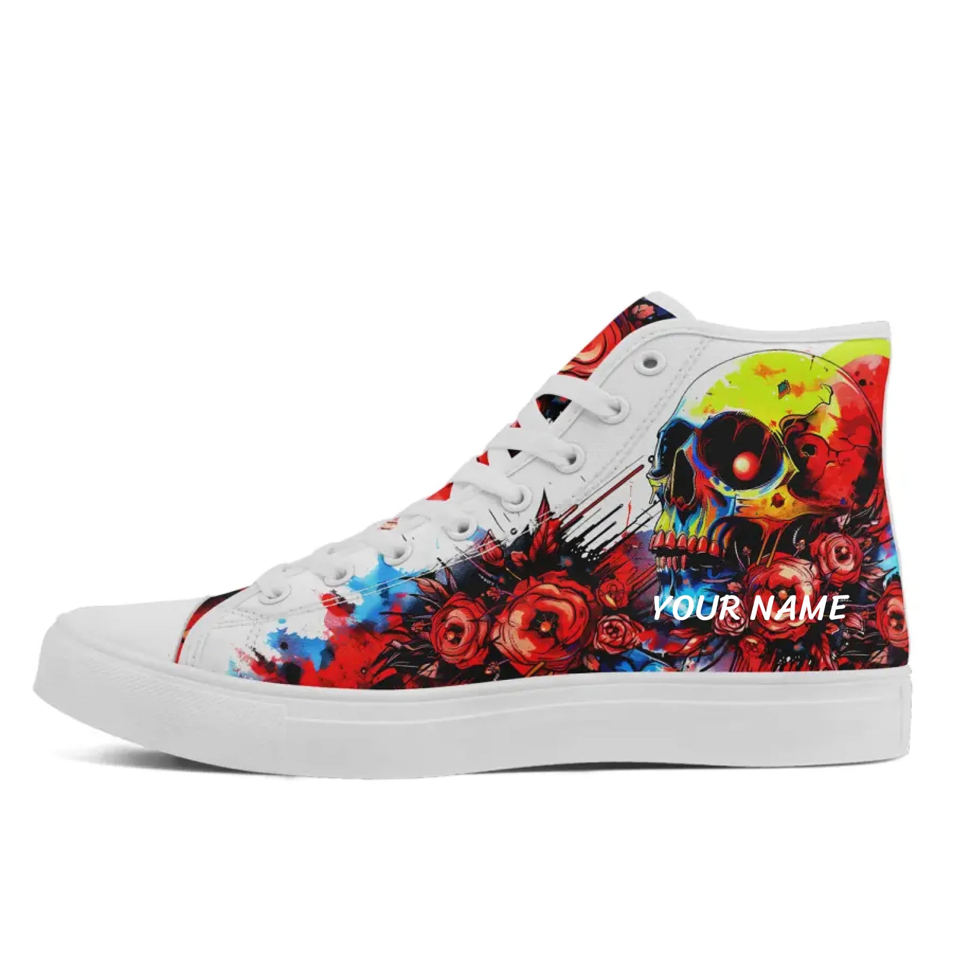 Unleash your bold style with Personalized Skull Sneakers, the ultimate footwear for fans of edgy, gothic fashion. These custom canvas high-top shoes showcase intricate skeleton designs that exude attitude and creativity. Perfect for men and women alike, they add a striking touch to casual outfits or themed occasions. Built for comfort and durability, these high-tops feature breathable canvas material and a sturdy rubber sole, making them perfect for everyday wear. Whether you're making a fashion statement or searching for a unique gift, these customizable sneakers are sure to impress. Key Features: Custom Skull Design: Add a personal touch with unique skeleton-themed artwork. Durable Canvas: High-quality material for lasting wear and bold style. Unisex Fit: Designed for both men and women in a range of sizes. Versatile Wear: Perfect for casual outings, events, or gothic-inspired ensembles. Comfortable Build: Lightweight with a supportive sole for all-day wear. Step into a world of bold fashion with these personalized skull sneakers—perfect for showcasing individuality with every step!